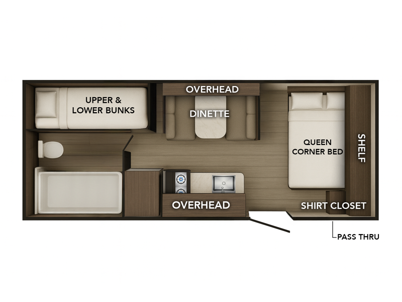 At just over 20 feet in length and 3,100 pounds dry, this unit is ideal for smaller trucks and SUVs while still packing in all the essentials. The aerodynamic profile and single axle design allow for smooth towing and easy maneuverability, while the smart interior layout makes the most of every inch of space.