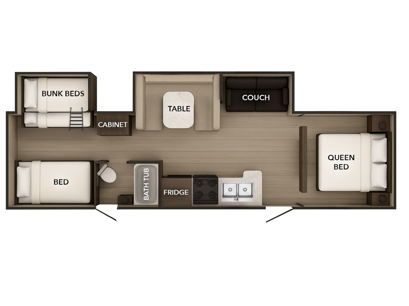 Two slide-outs expand both the lounge and the bunkhouse for added comfort and storage.